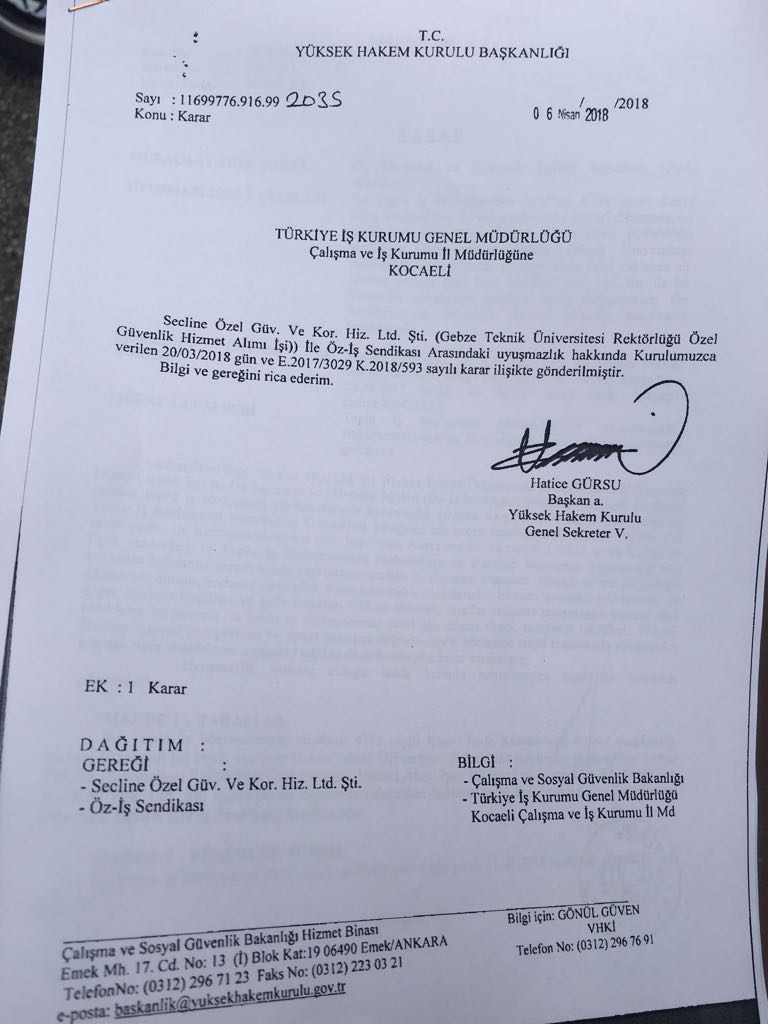Hak-İş Konfederasyonuna bağlı Öz-İş Sendikası bir skandala imza attı. Gebze Teknik Üniversitesi Rektörlüğü bünyesinde çalışmakta olan işçilerden toplu iş sözleşmeleri bittiği halde zorla aidat almaya devam ediyor. İşçilerin isteklerini görmezden gelen sendika aidat değil haraç alıyor.