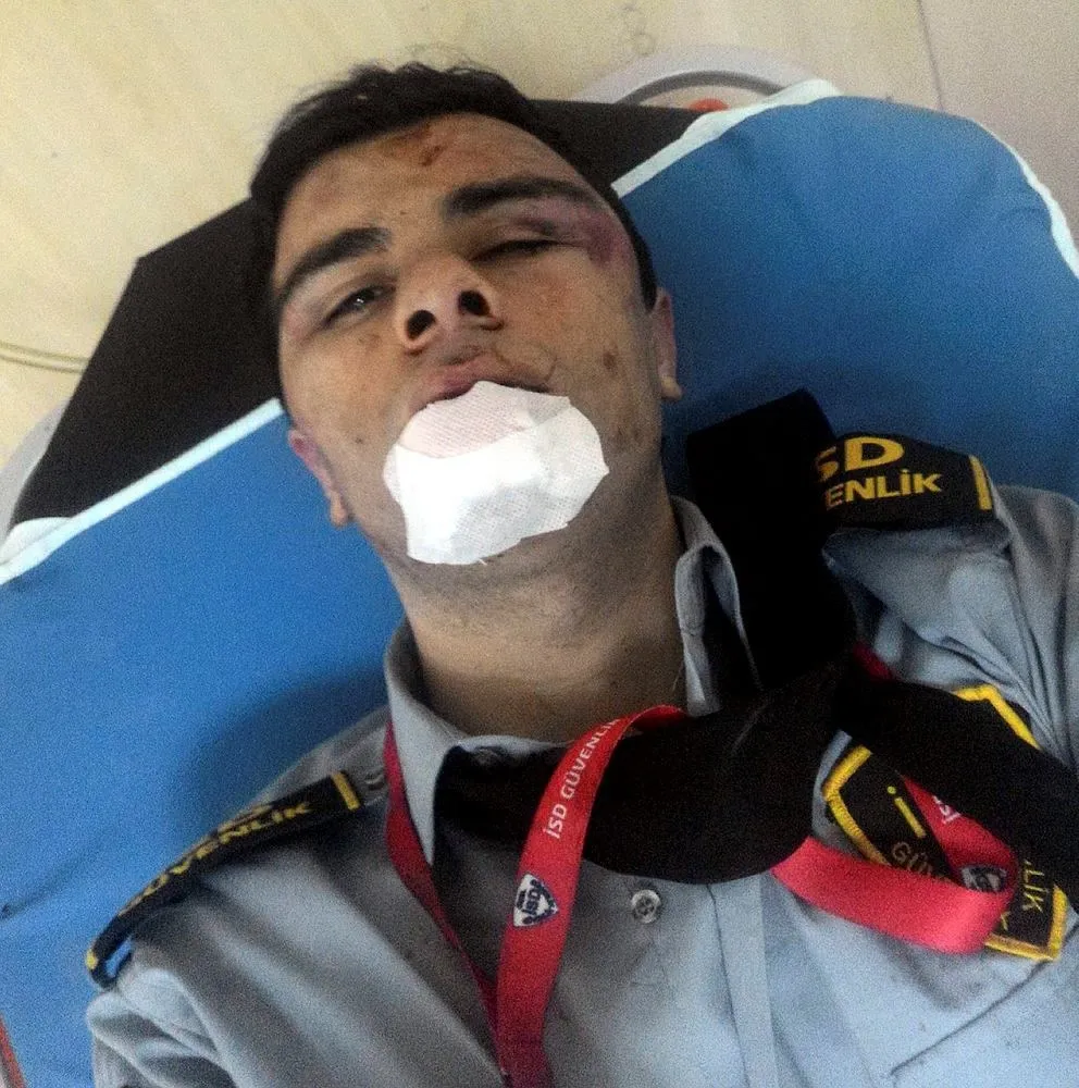 Gişelerden geçen 2 kişiyi uyaran güvenlik görevlisi Orhan Atmaca, saldırıya uğradı.Demir ve Kılıçarslan., Atmaca’nın kafasına kendi copuyla 17 kez vurdu, daha sonra da tekmeledi.