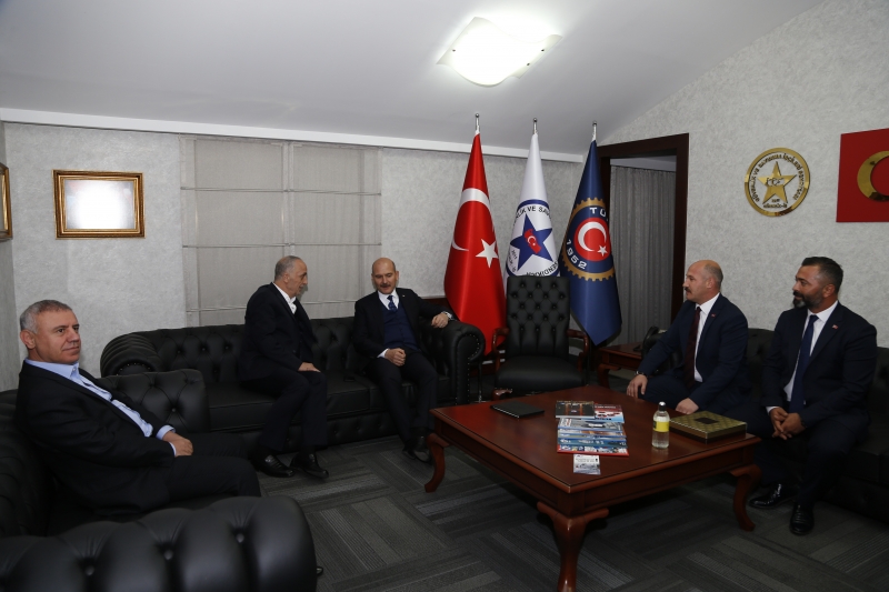 İçişleri Bakanı Süleyman Soylu, Türk-İş Konfederasyonuna bağlı Güvenlik-İş Sendikasını ziyaret etti.