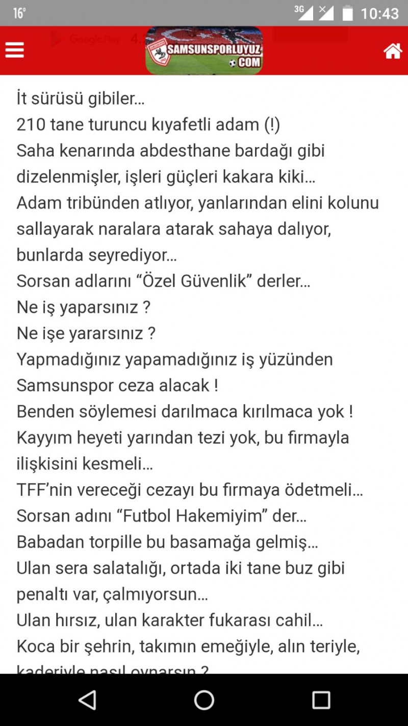 http://www.samsunsporluyuz.com adlı Samsunspor gündemini takip eden sitede özel güvenlik görevlilerine hakaeret yazı yazan Resul Akçay hakkında Güvenlik İş Sendikası Genel Başkanı Ömer Çağırıcı açıklama yayınladı.