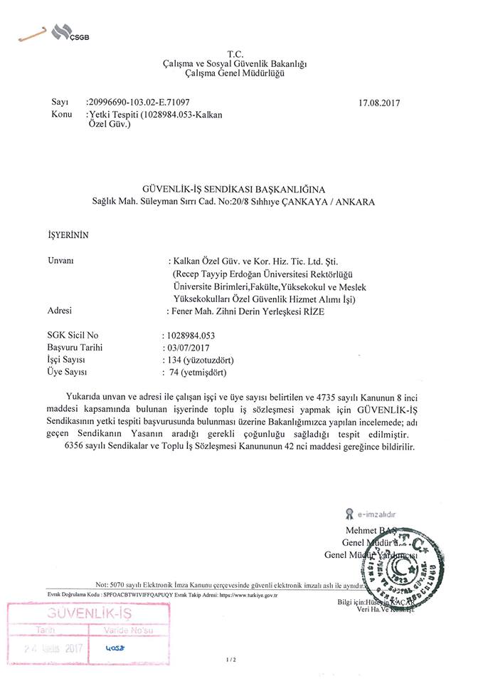 Rize Recep Tayyip Erdoğan Üniversitesinde çalışan özel güvenlik görevlileri bilindiği üzere HAK-İŞ'e bağlı ÖZ-İŞ Sendikasından Özel Güvenlik Görevlilerinin sorunlarına çözüm bulamaması ve yalan beyanda bulundukları gerekçesi ile Öz-İş Sendikasından istifa ederek TÜRK-İŞ'e bağlı Güvenlik-İş Sendikasına üye olmuşlardı,ancak bir türlü bu durumu kabullenemeyen ÖZ-İŞ Sendikası Yönetici ve Temsilcileri,Özel Güvenlik Sektöründe habercilik lüks izmirğını iddia eden şahıslar , sosyal medya sayfaları üzerinden Güvenlik-İş Sendikasında yetki yok algısı yaparak yalan beyanlarla algı yapmaya çalışmış ama başarılı olamamışlardı.