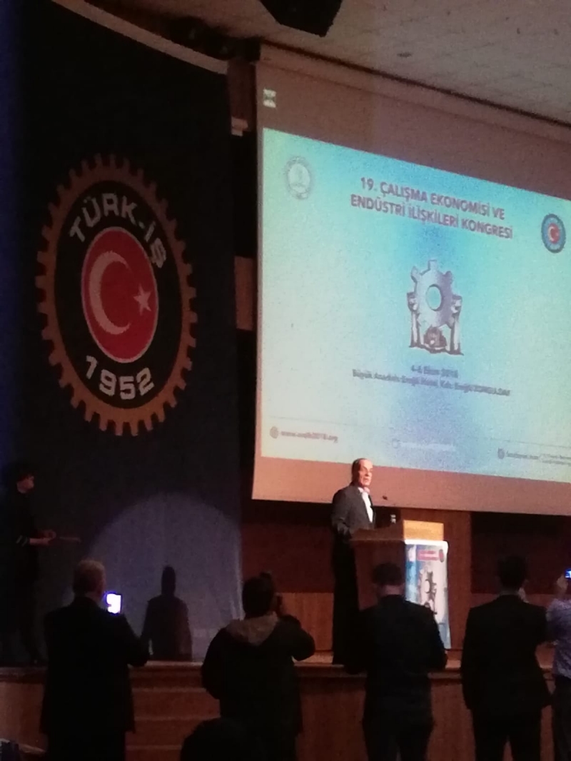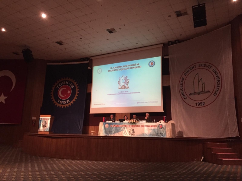 Türk-İş ve Bülent Ecevit Üniversitesi (BEÜ) iş birliğiyle Zonguldak'ın Ereğli ilçesinde düzenlenen 19. Çalışma Ekonomisi ve Endüstri İlişkileri Kongresi'nde konuşma yapan
